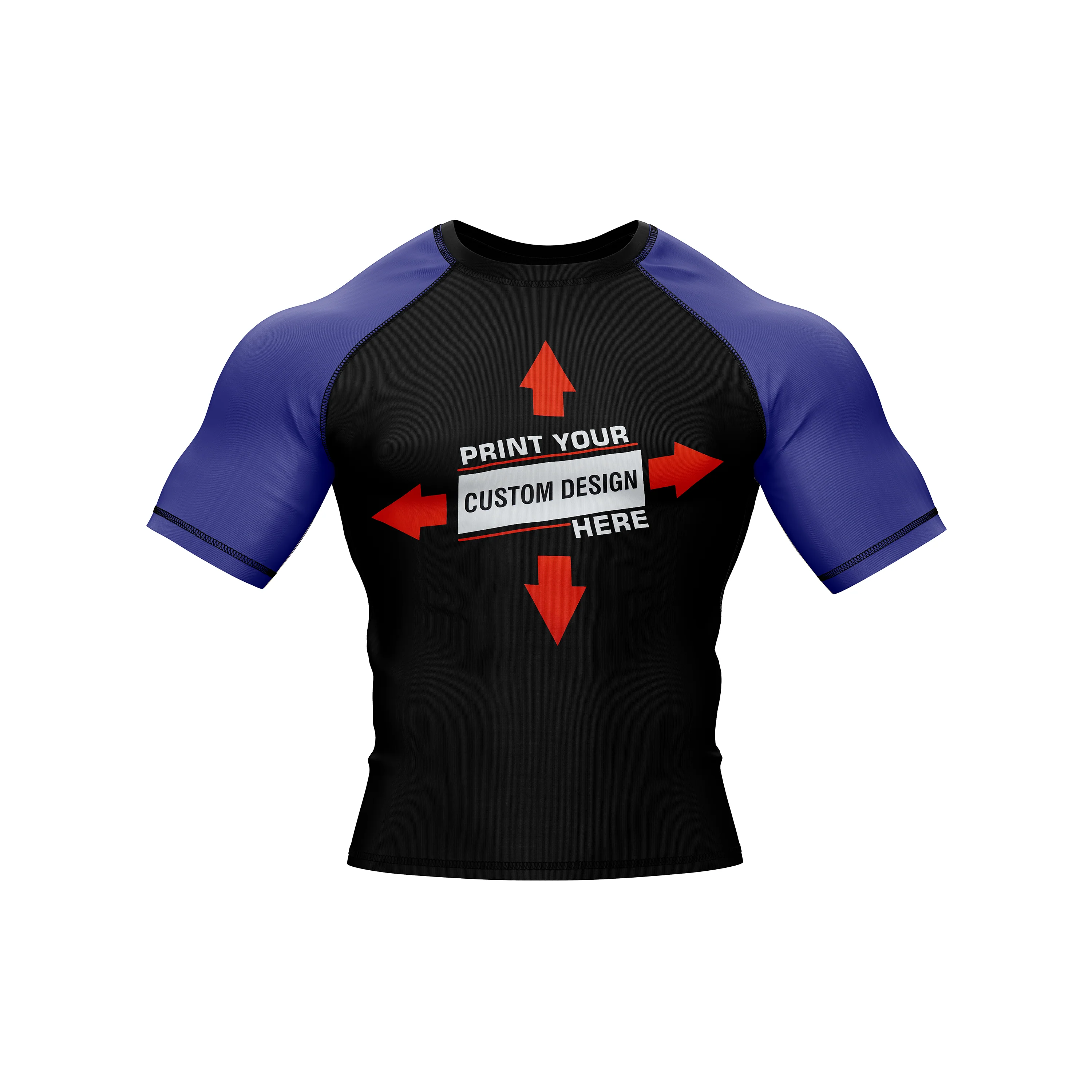 Make your mark with the Customized Black/Blue Rash Guard / Compression Top, a high-quality BJJ rash guard featuring your custom logo or design on the front. The bold black body with blue sleeves gives a sleek athletic look while delivering top-tier performance and comfort.