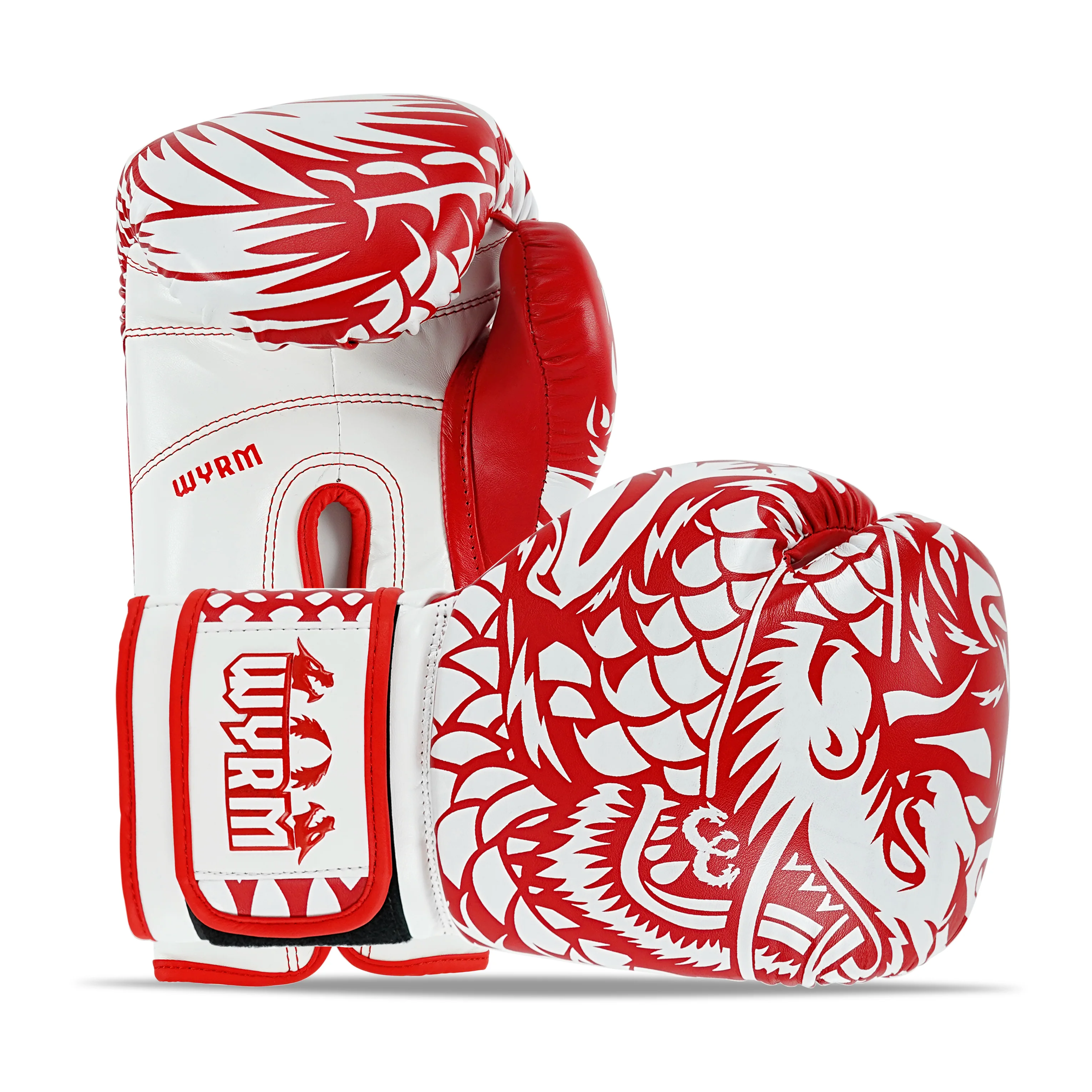 Dragon White/Red Leather Boxing Gloves