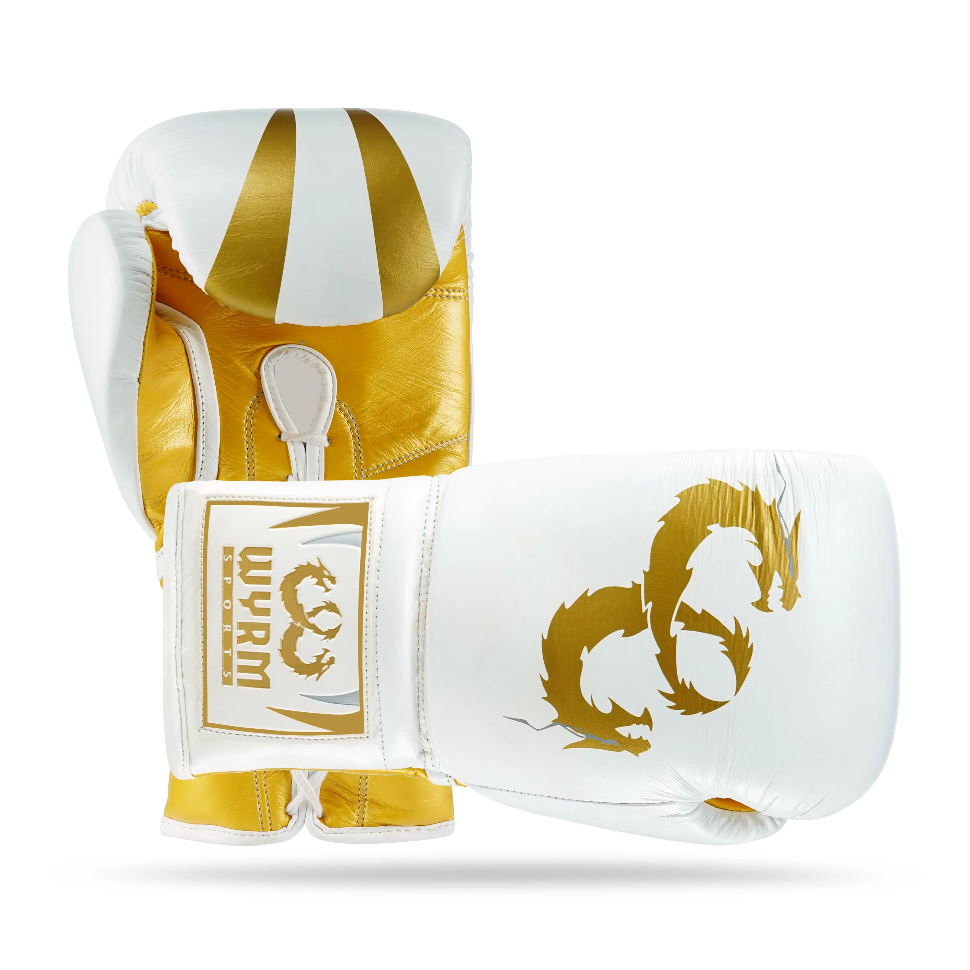 WYRM White/Gold Pro Boxing Genuine Leather Gloves
