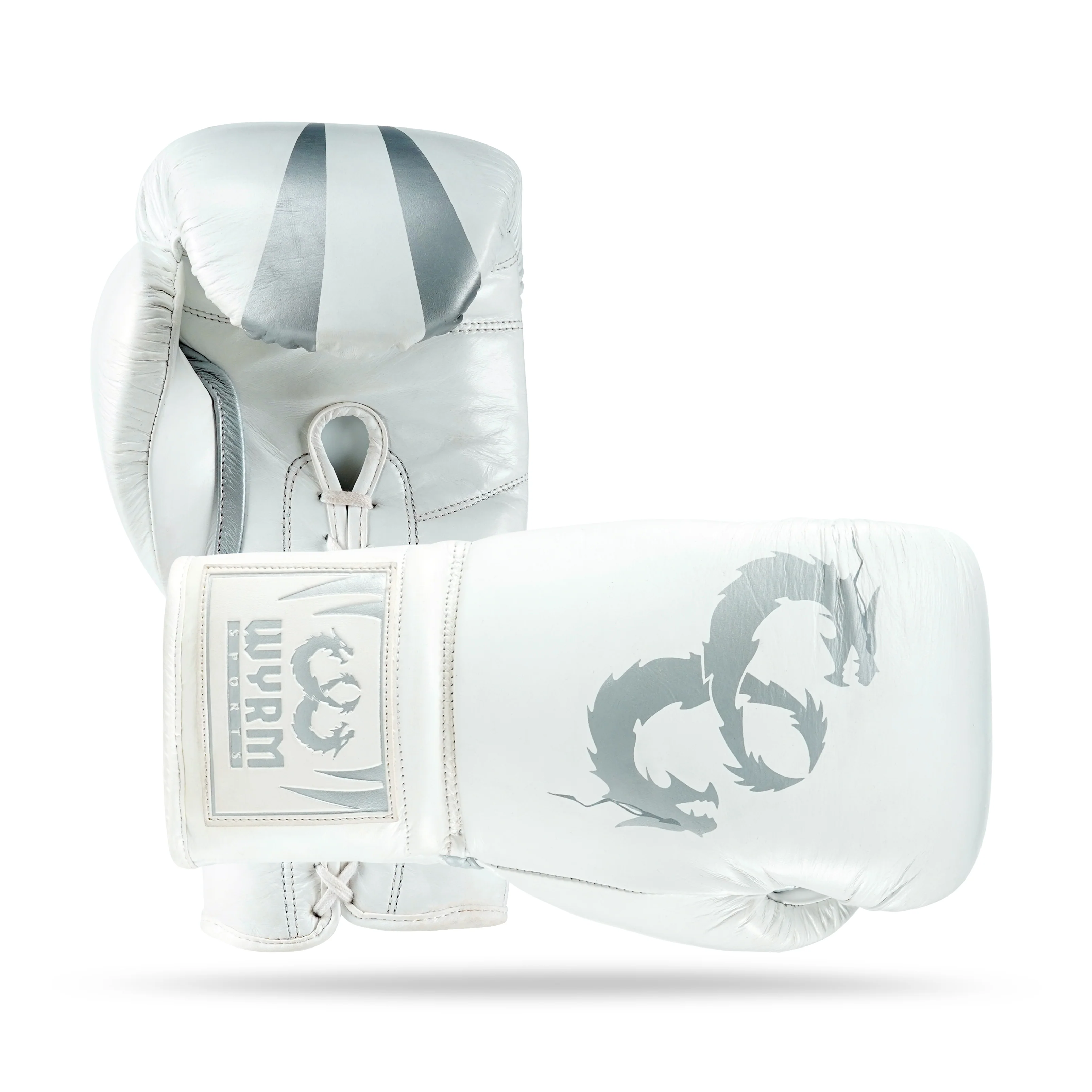 WYRM White/Silver Pro Boxing Genuine Leather Gloves